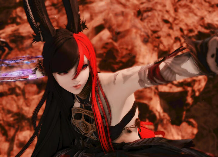 Born in Kugane, Aoba found herself in the service of the Seikisigumi, the policing force of Kugane. After proving her prowess with the blade, she was given the title of Brilliant Flame. Now using her flaming weapons, Aoba dishes out justice against those she has deemed evil or in need of punishment.